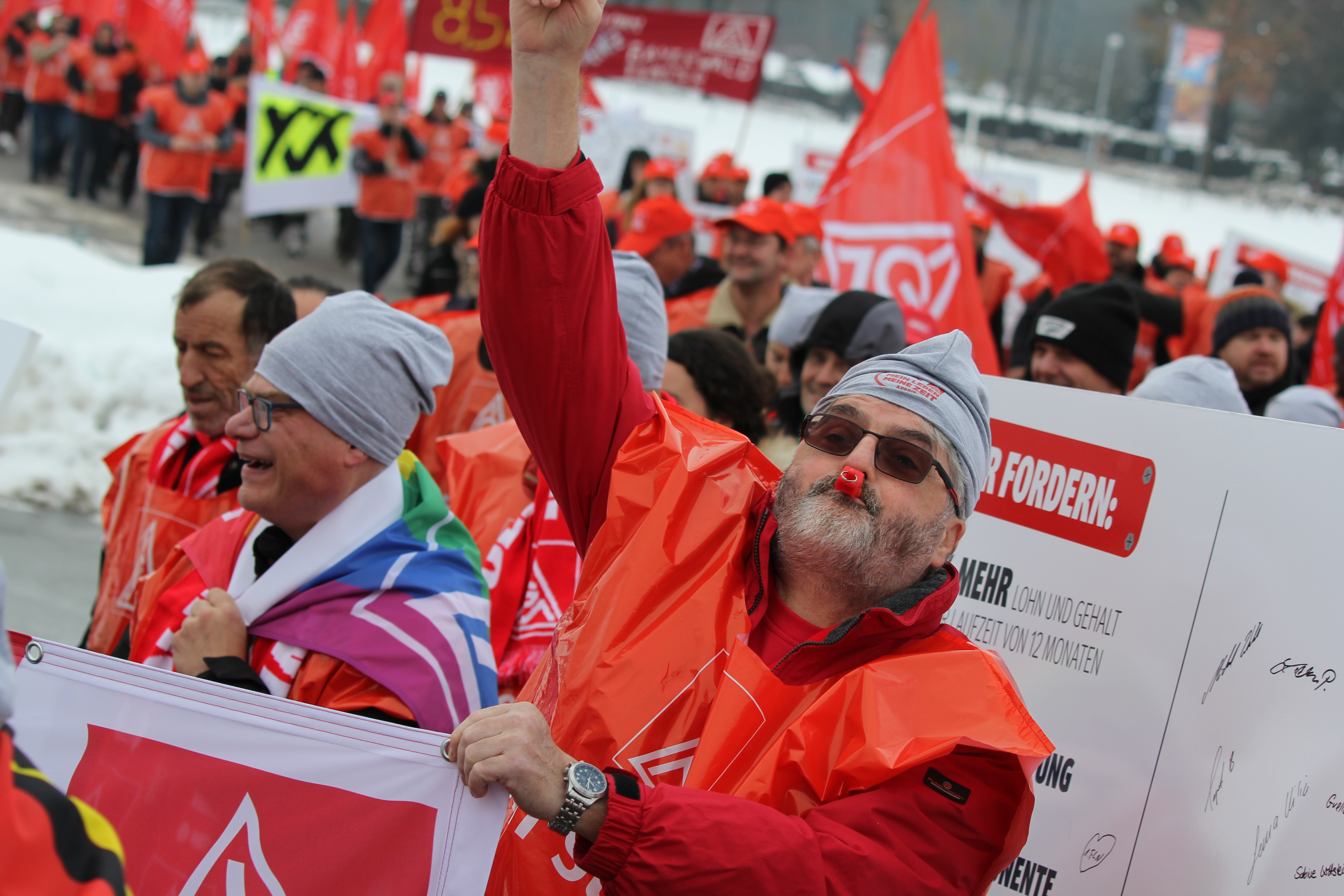 Nach dem Auftakt in Rheinland-Pfalz starteten mit Auslaufen der Friedenspflicht In Bayern am Samstag um 0 Uhr die Beschäftigten bei Heyco in Tittling in die Warnstreiks. Am Montag legten dann die Beschäftigten in zahlreichen Betrieben bundesweit die Arbeit nieder.